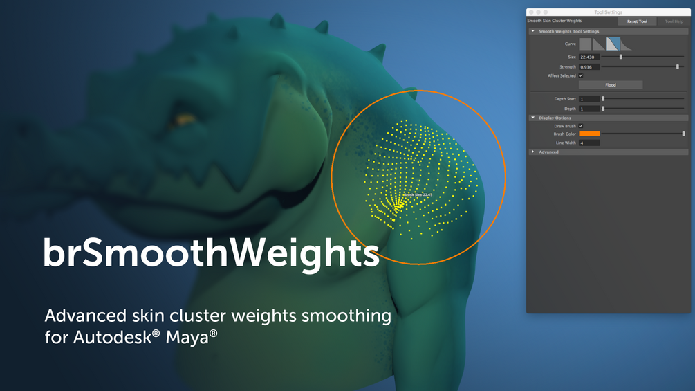 brSmoothWeights is a plug-in for Autodesk Maya to make skin cluster smoothing fast and easy making it one of the most used tools for skin weight smoothing.